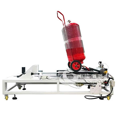 3.4将推车式灭火器按其正常使用位置放在平整的水泥地上,并将推车式灭火器从垂直的位置偏离10°,然后释放,观察是否复位。