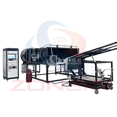 适用于各类建筑物或构筑物屋面晶体硅光伏与压型钢板构件的耐火等级试验。模拟真实条件下来评估屋顶及组件的耐火性能;